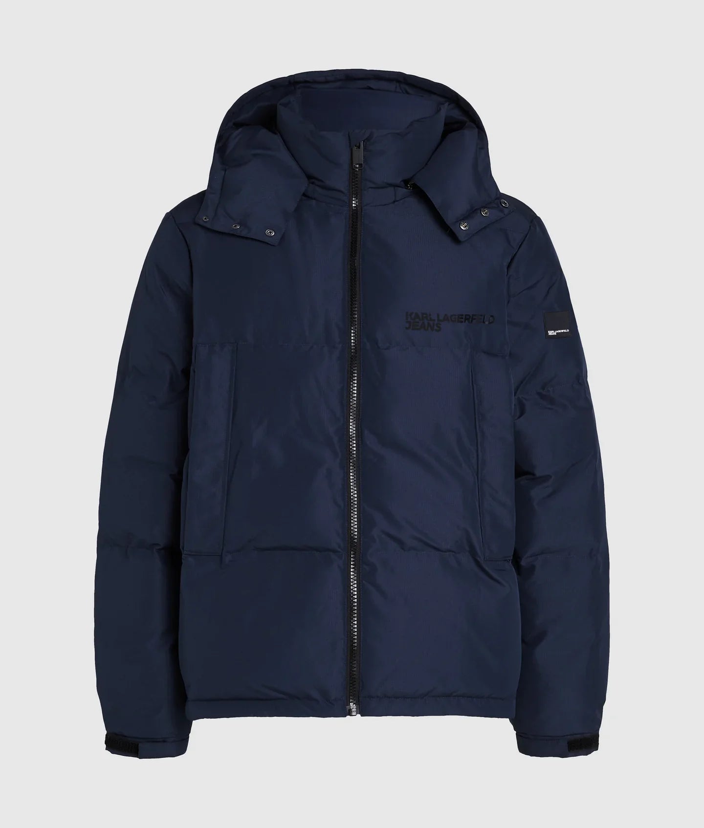 Embrace a street-style aesthetic with this puffer jacket, featuring a zip front closure that leads to a high funnel neck and a detachable hood for versatile styling. Practical zipped side pockets add functionality, while the bold KARL LAGERFELD JEANS logo makes a striking statement.