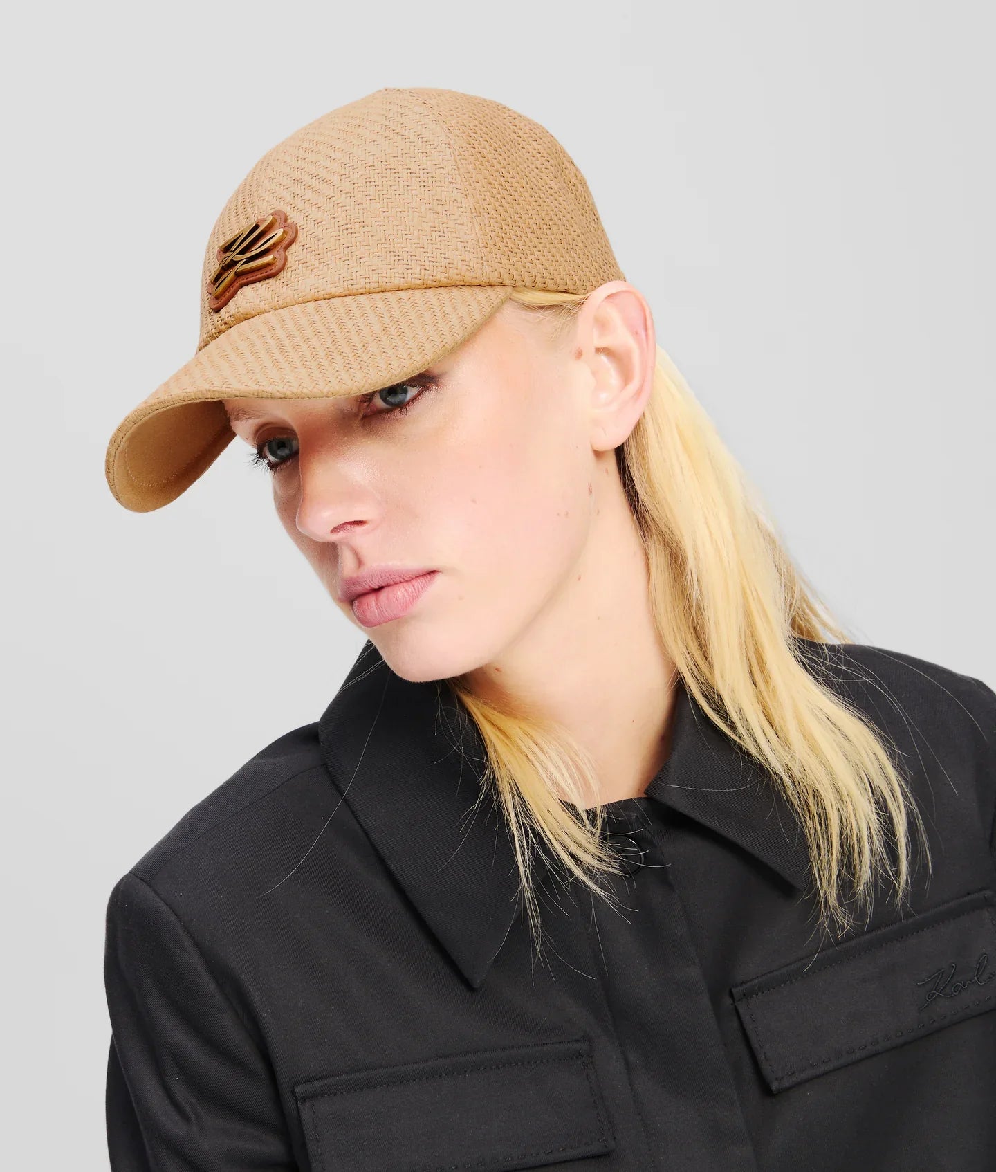 A chic addition to any summer wardrobe, this cap showcases a beautifully woven straw design. The classic curved peak offers a timeless silhouette, while the elegant finishing details, including the iconic KARL Autograph logo, elevate its charm.