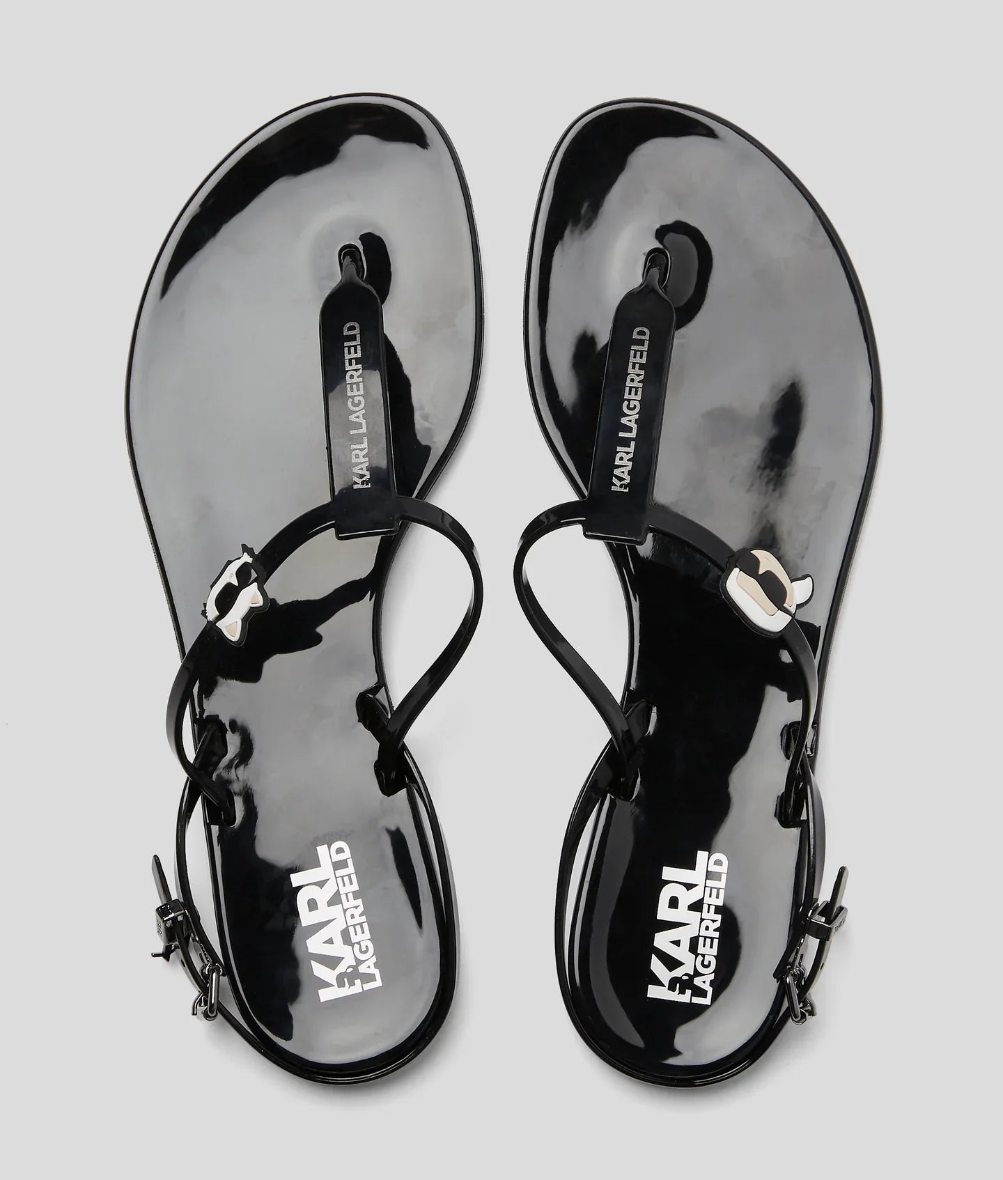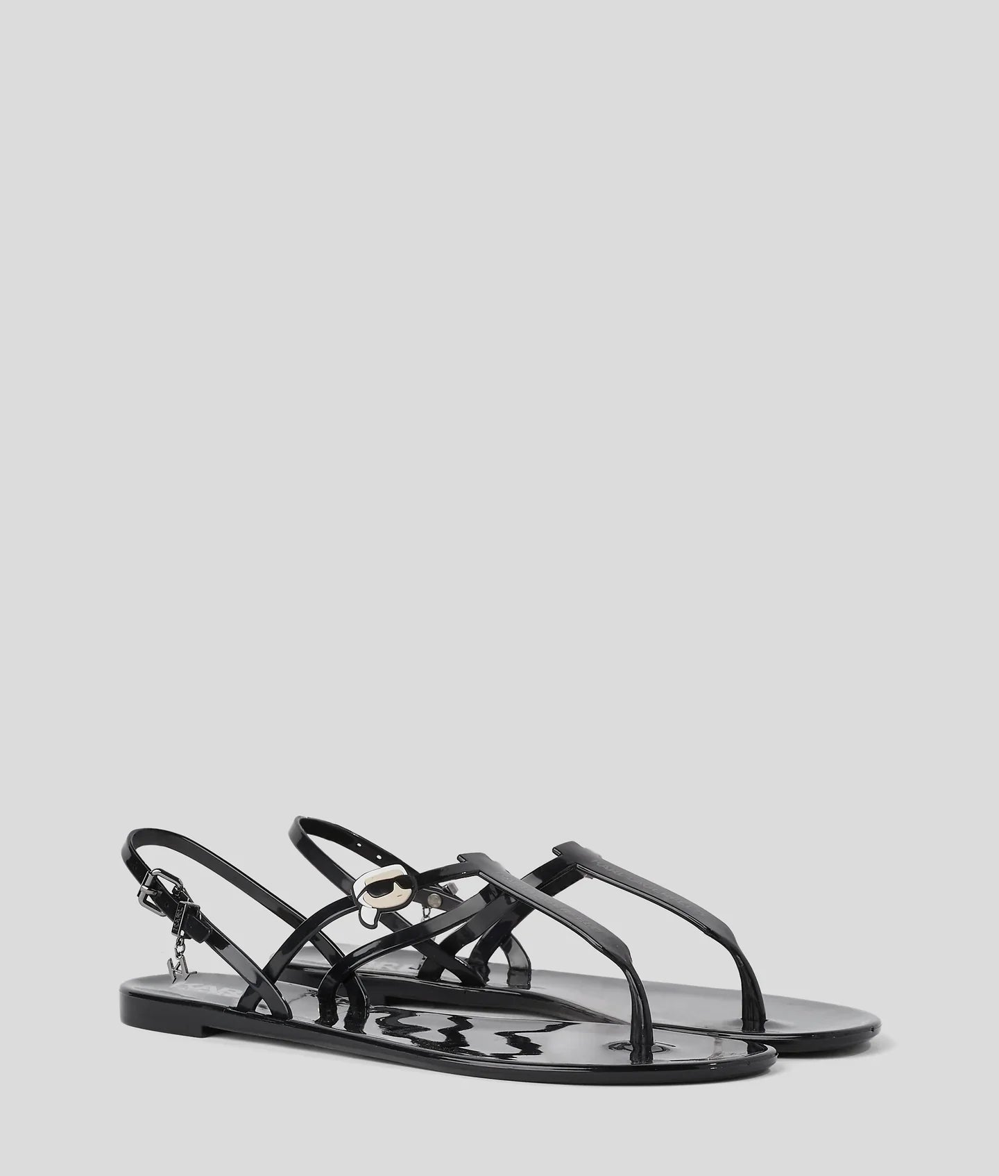 Embrace modernity with KARL LAGERFELD's jelly sandals, featuring secure buckle fastening and a distinctive NFT rubber patch for a touch of digital-age luxury. Perfect for the discerning individual looking for a blend of fashion-forward styling and day-long comfort.