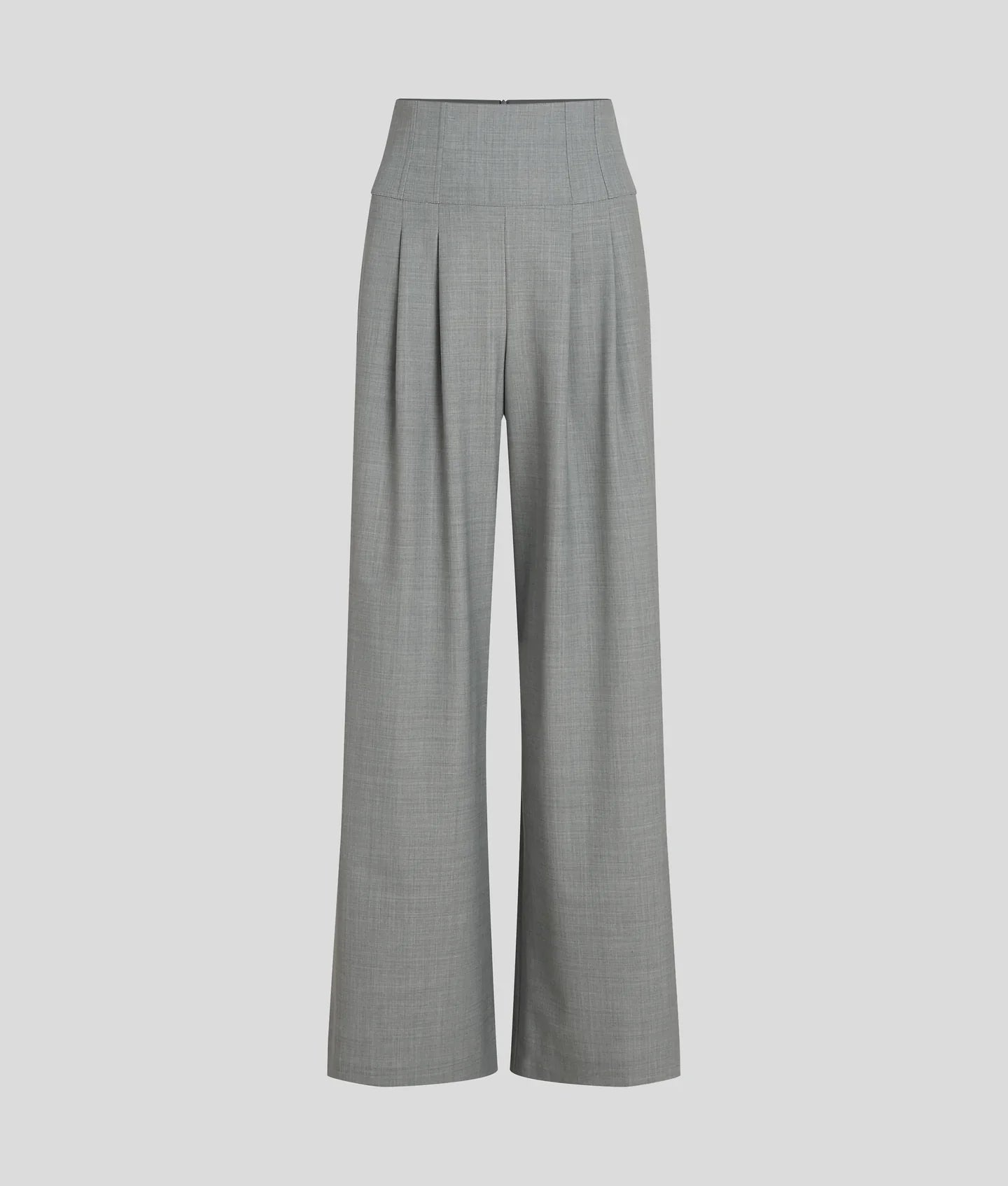 Reimagine modern sophistication with these wide-leg pants that fuse fluid elegance with a structured edge. The reinforced, ultra-high waist delivers a contoured fit, perfect for commanding attention in the boardroom and beyond. Style yours with a boxy, oversized blazer for the ultimate power pairing.