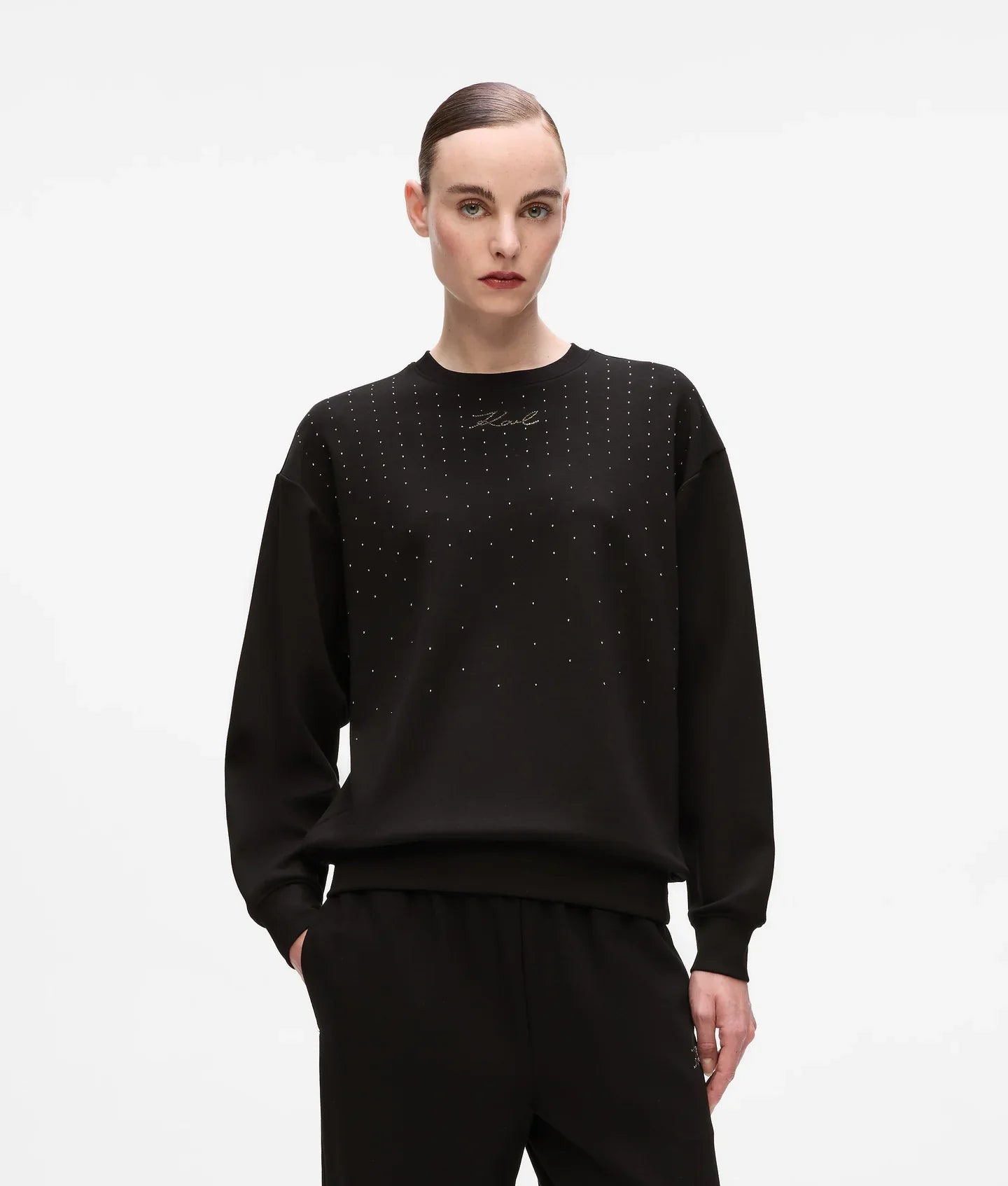 A roomy crew-neck sweatshirt featuring a cascade of shimmering rhinestones at the chest and Signature logo embellishment. Perfect for adding a bold, sparkling touch to casual looks.