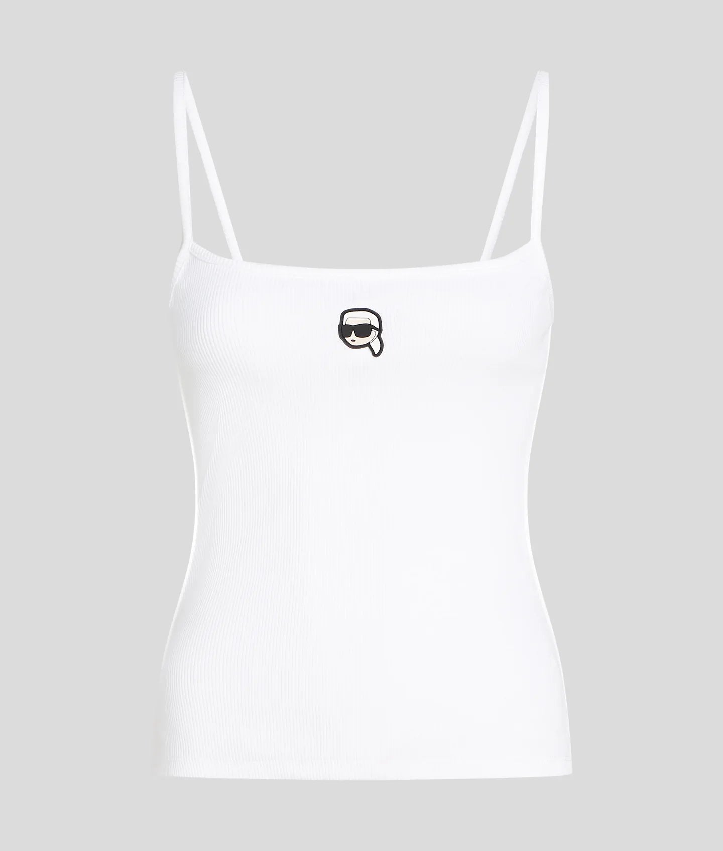 A sleek, form-fitting silhouette defines this tank top, featuring a chic square neckline and slim shoulder straps. The IKON Karl patch at the front adds a playful touch, perfect for effortless style.