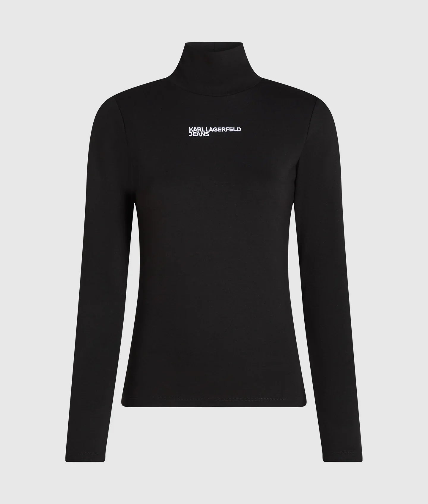 A fitted long-sleeved top in soft viscose jersey, featuring a cozy rolled neck and a contrasting logo print at the chest.